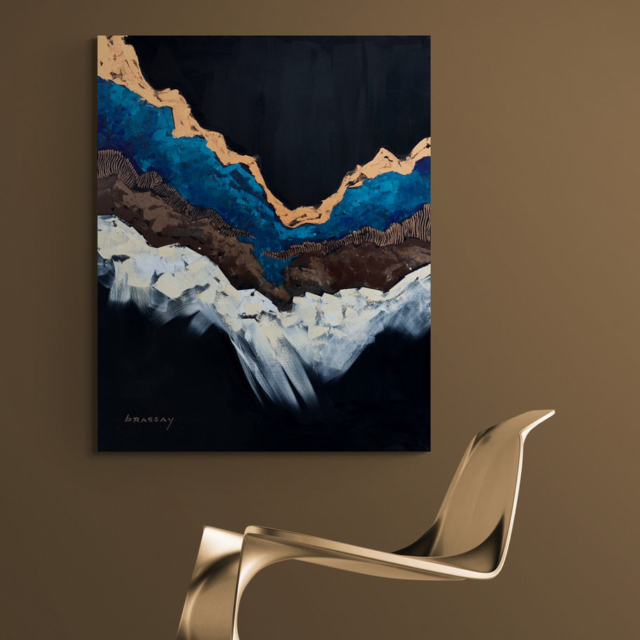 "Conversation with the Muse" evokes a profound dialogue between the artist and their source of inspiration, depicted through abstract elements that suggest flow, movement, and a sense of guidance. The muse is represented by luminous colors, fluid shapes, and layered textures. The contrasts between light and dark spaces capture the essence of discovery, as the muse reveals insights gradually, letting the viewer uncover secrets over time. In viewing this painting, a sacred, personal dialogue can be witnessed, one that explores creativity, inspiration, and the mysterious process of creation itself.